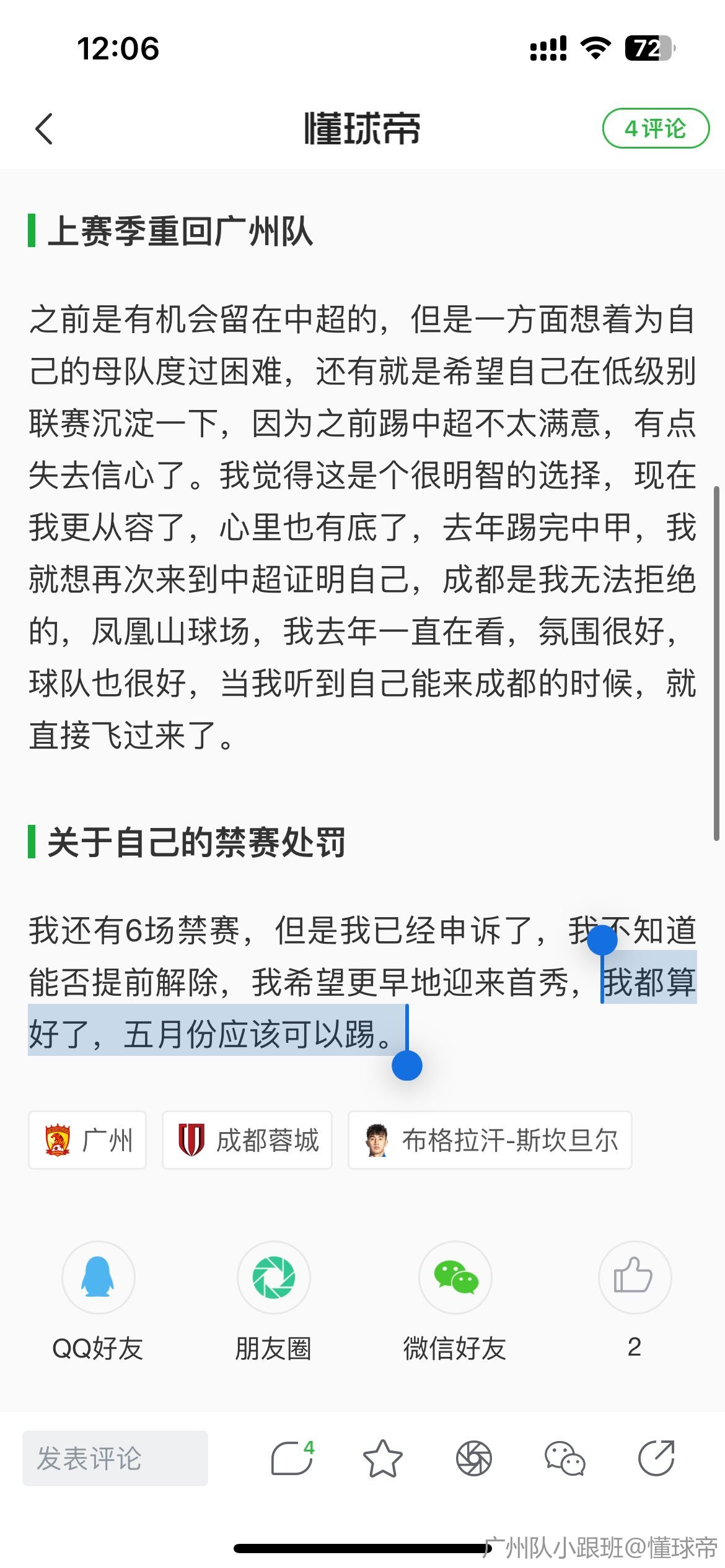 扫描下载懂球帝首页>动态> 布格拉汗:上赛季回广州是想帮助母队,重返中超希望证明自己