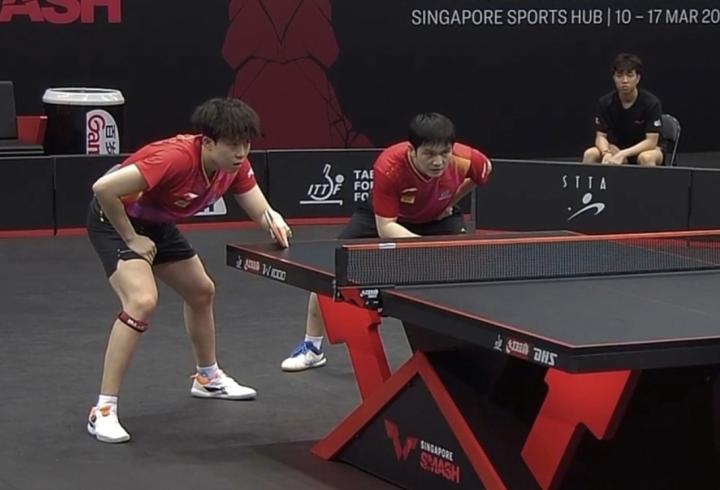 在男双1/4决赛的比赛中。世界排名第一的中国组合王楚钦/樊振东以3-1(9-11,11-6,11-7,11-4)的比分战胜世界排名第11的新加坡组合冯耀恩/郭勇,顺利晋级半决赛。