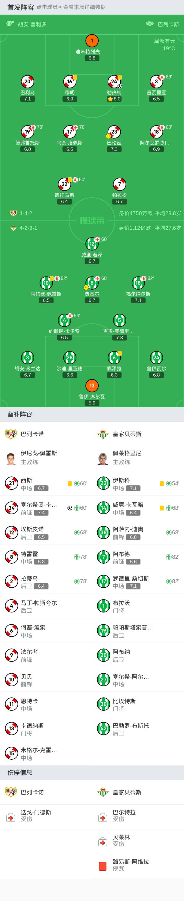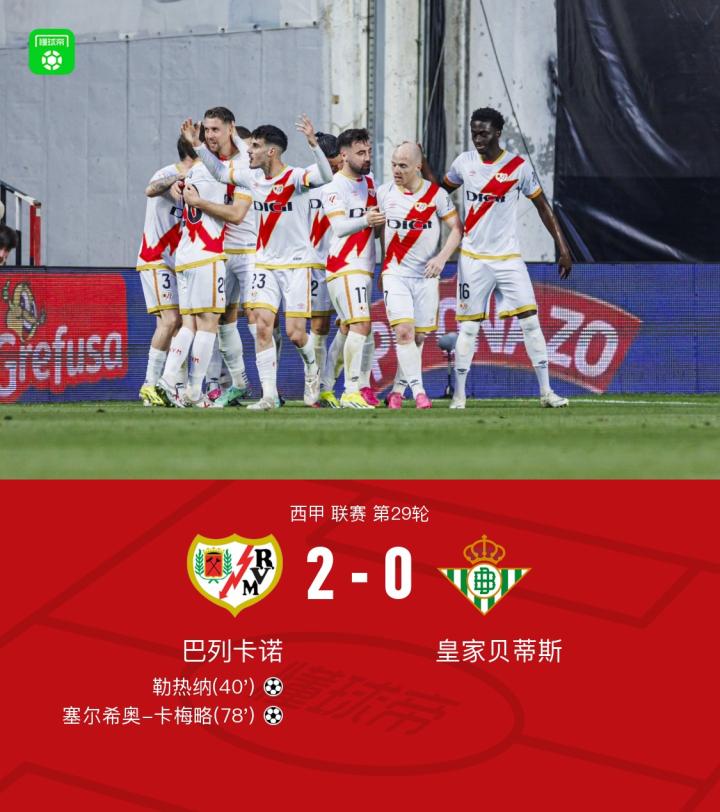 扫描下载懂球帝首页>动态> 巴列卡诺2-0皇家贝蒂斯,勒热纳破门,卡梅略锦上添花