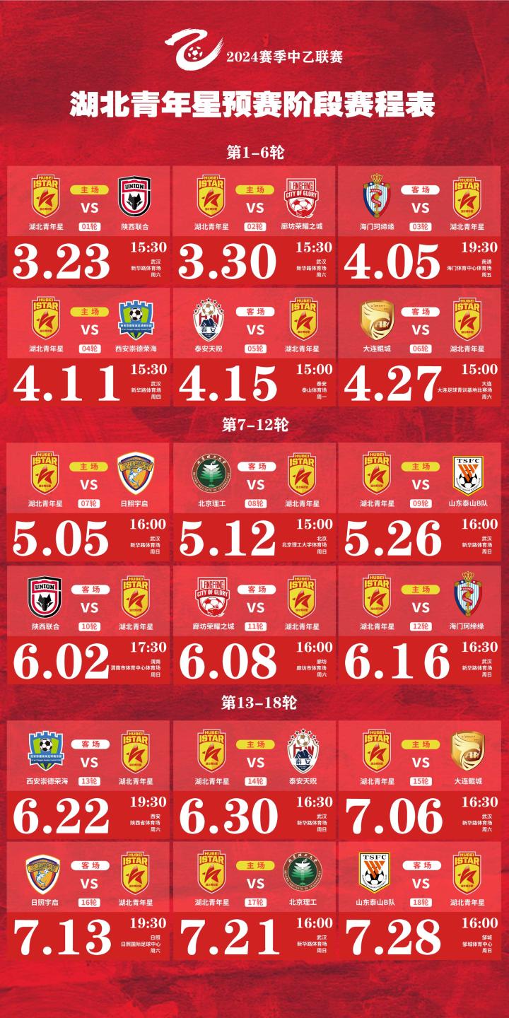 扫描下载懂球帝首页>动态> 懂球号> 2024中乙联赛湖北青年星一线队大名单及赛程表