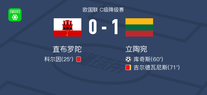 北京时间3月22日,欧国联C级降级赛上,直布罗陀在主场迎战立陶宛。立陶宛队的库奇斯打破僵局,最终比分定格在直布罗陀0-1立陶宛。