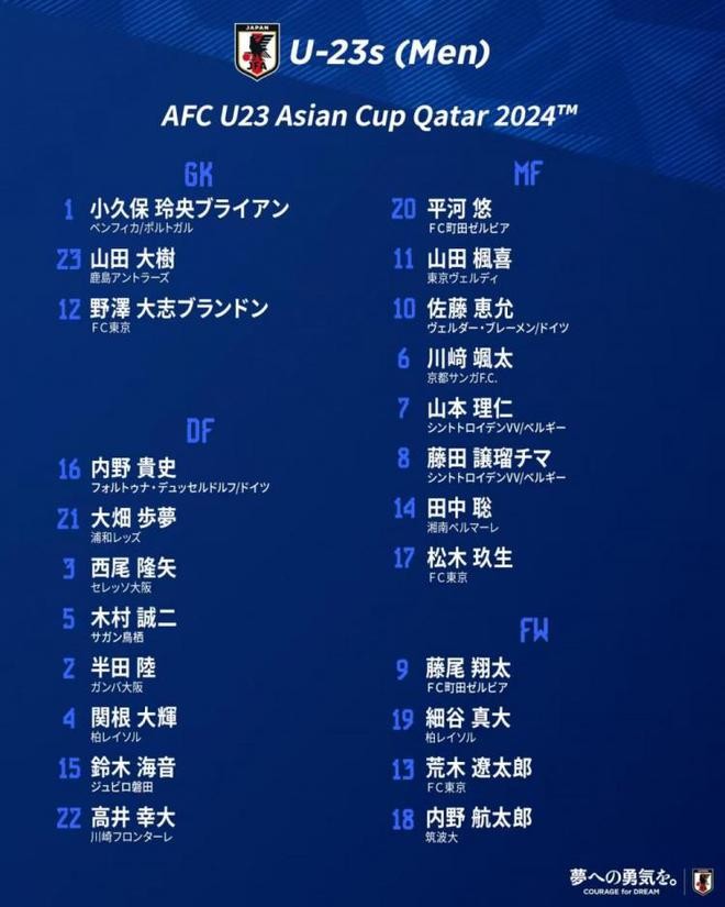 落选U-23亚洲杯的旅欧球员:久保建英、昂利·蔡斯、福田师王、松田隼风、佐野航大、齐藤光毅、三户舜介、福井太智、铃木彩艳、后藤启介、熊田直纪、小田裕太郎、二田理央、铃木唯人。