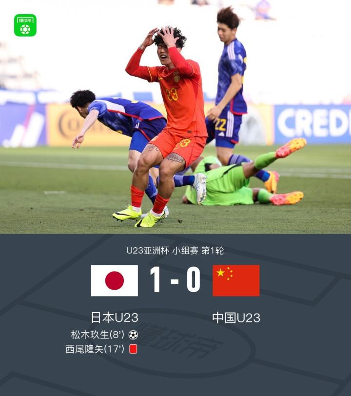 第8分钟,日本国奥传中,松木玖生后点推射破门,中国国奥0-1落后…