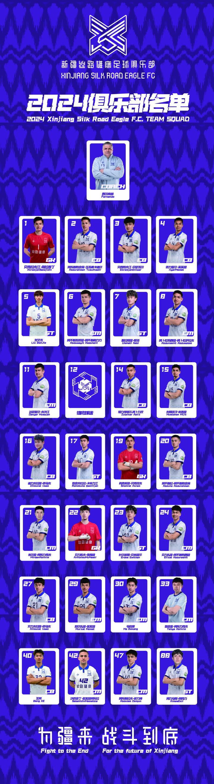 新疆丝路雄鹰足球俱乐部2024赛季大名单