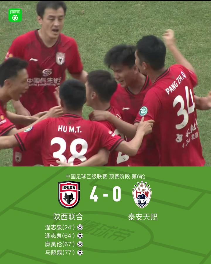 扫描下载懂球帝首页>动态> 陕西联合4-0泰安天贶,逄志泉两射一传,糜昊伦、马晓磊破门