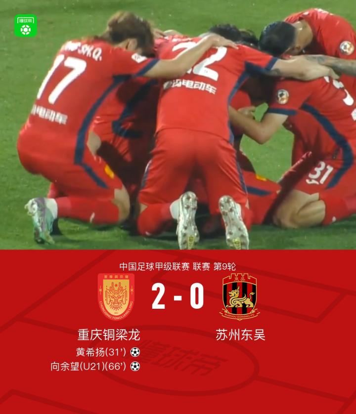扫描下载懂球帝首页>动态> 重庆铜梁龙2-0苏州东吴,黄希扬建功,向余望锦上添花