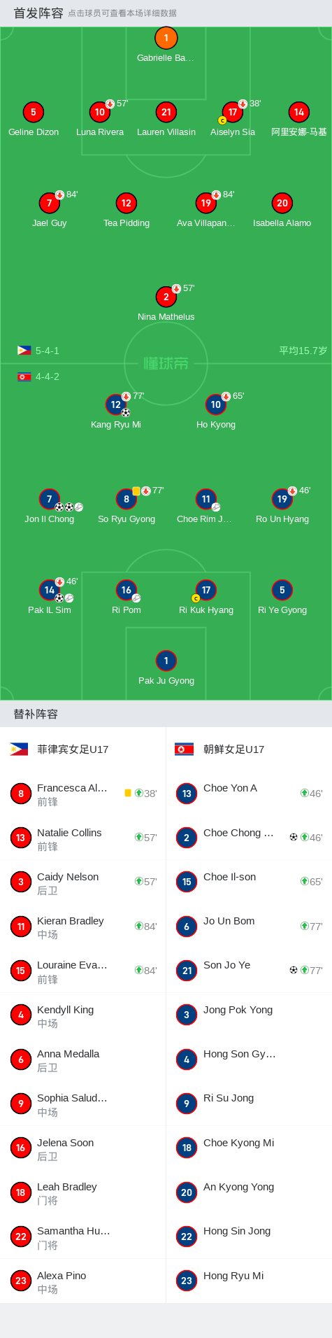 第24分钟,朝鲜女足U17球员Jon Il Chong助攻Kang Ryu Mi打入一球。