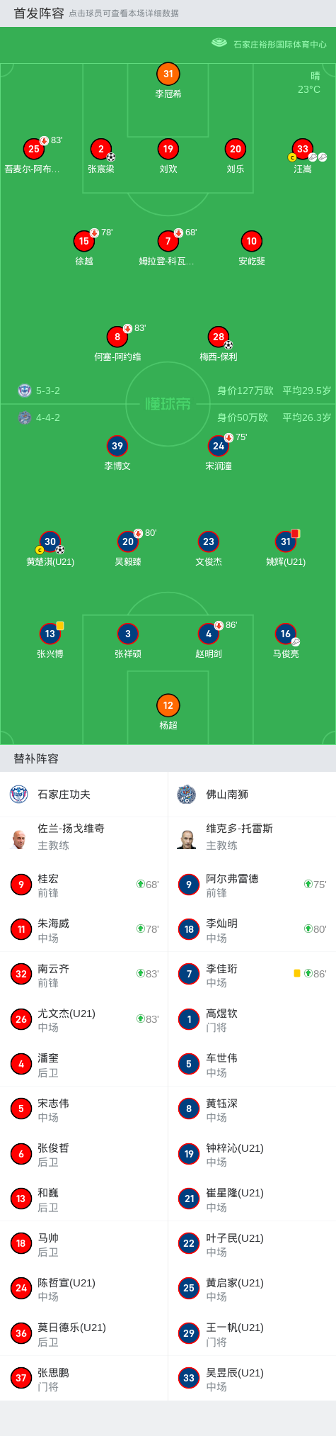 04-18 15:00佛山南狮vs长春亚泰:双方均3外援首发,谭龙、景泊羲出战
