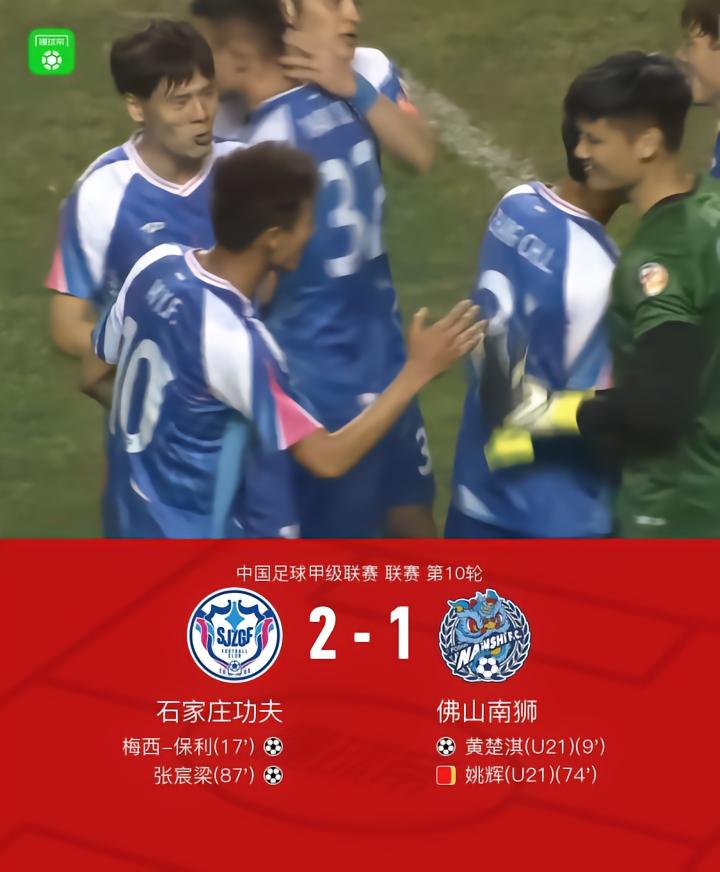 扫描下载懂球帝首页>动态> 石家庄功夫2-1逆转佛山南狮,张宸梁建功,梅西-保利破门