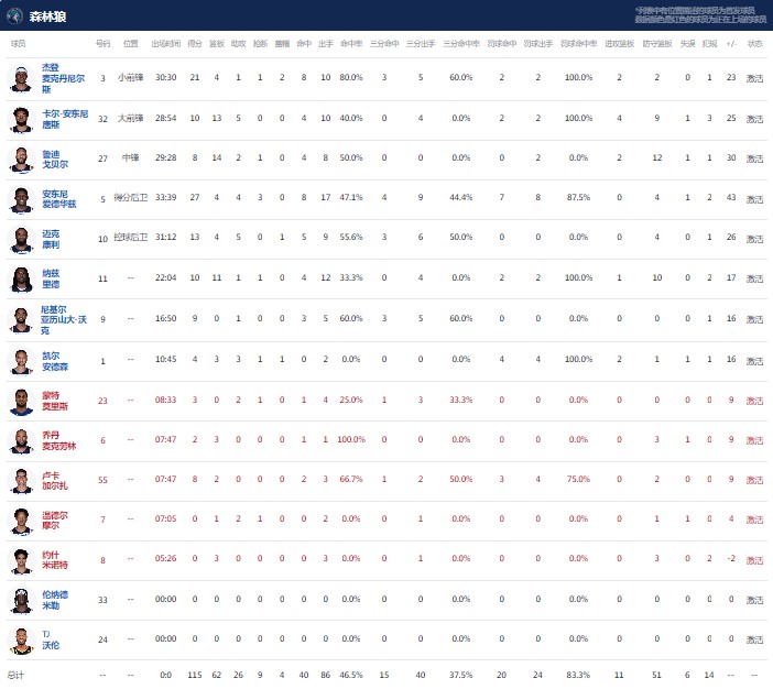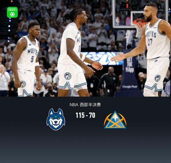 扫描下载懂球帝首页>动态> 拖入抢七!森林狼115-70狂胜掘金,爱德华兹27分,穆雷18中4