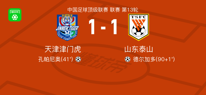 扫描下载懂球帝首页>动态> 天津津门虎vs山东泰山球员评分:什科里奇8.2分,王政豪6.3分