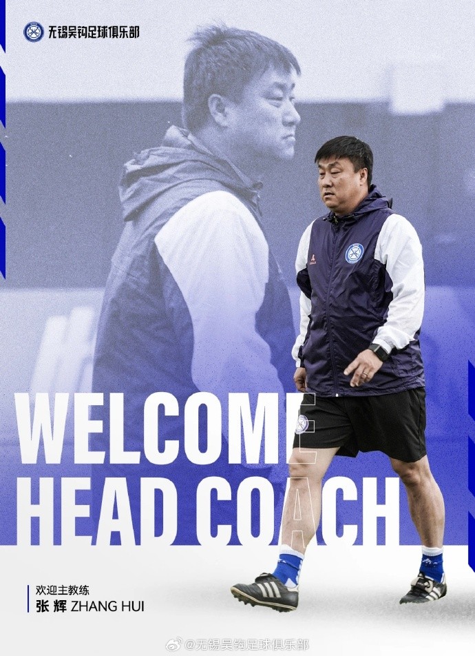 经与本人友好协商一致,即日起,张辉先生出任无锡吴钩足球俱乐部一线队主教练。