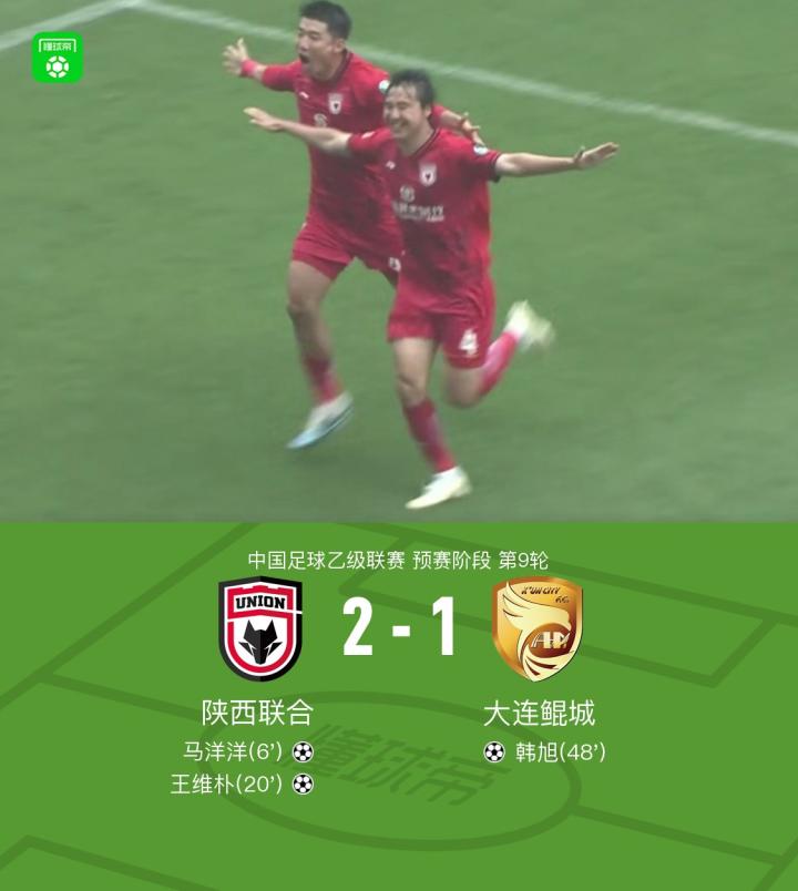 扫描下载懂球帝首页>动态> 陕西联合2-1大连鲲城,马洋洋、王维朴破门,韩旭世界波