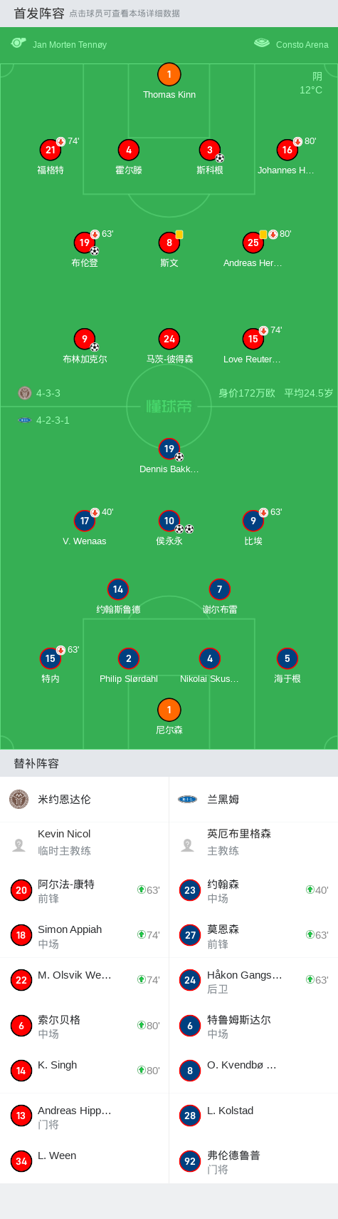 第70分钟,兰黑姆球员Dennis Bakke Gaustad打入一球。