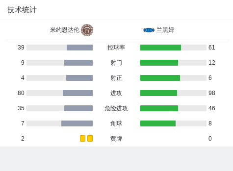 第35分钟,米约恩达伦球员布伦登打入一球。