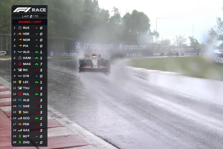 无论是先变小又变大的降雨,无论是从不同的雨胎到不同干胎配方的选择,无论是开场haas全雨超半雨的短暂惊艳,还是比赛后期白胎毫不逊于黄胎的惊艳的速度表现,黄超白+白超黄都有了