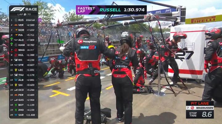 第8圈,前功尽弃!哈斯的换胎出现问题!马格努森掉出积分区!