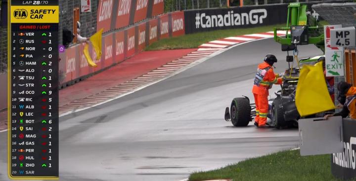 第28圈!萨金特的事故还在处理,奥康、博塔斯没有选择进站,分别上了9个位置和6个位置!