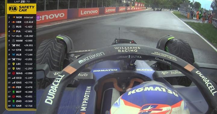 第54圈!赛恩斯打滑避让不及!与阿尔本发生事故!安全车再次出动!!!