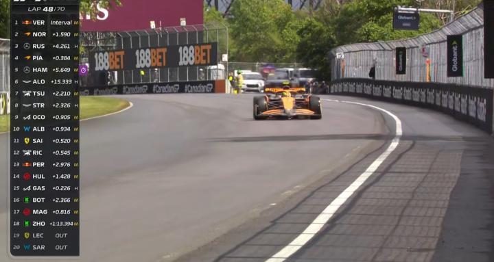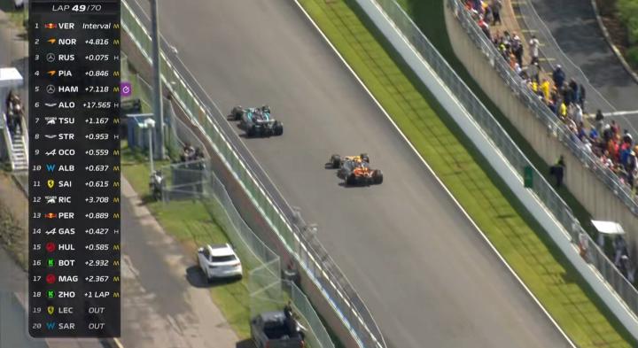 第49圈!诺里斯出弯时锁死!被拉塞尔在直道轻松超越!