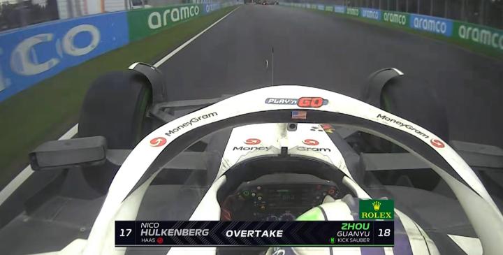 第38圈!霍肯博格晚刹车&DRS超越周冠宇!周冠宇落到第18位!