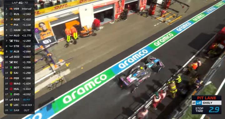 第41圈!加斯利进站选择换上硬胎!场上唯一的干胎!