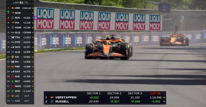 第51圈!拉塞尔在9号弯出现失误!被诺里斯超过!