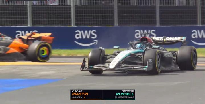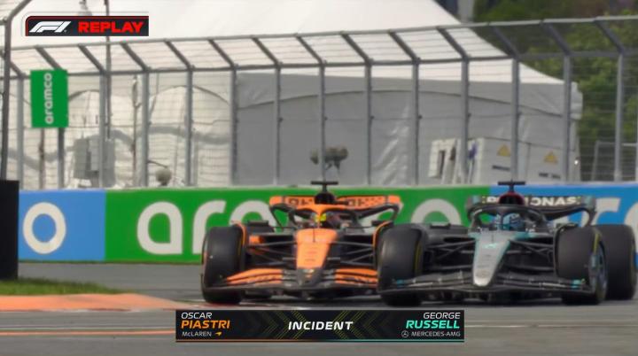 第64圈!皮亚斯特里与拉塞尔发生碰撞!拉塞尔冲出赛道!