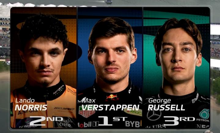 1-5名:维斯塔潘、诺里斯、拉塞尔、汉密尔顿、皮亚斯特里