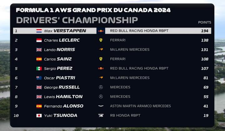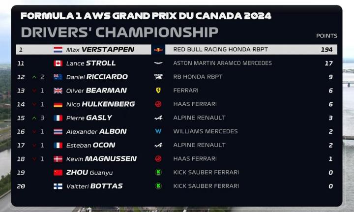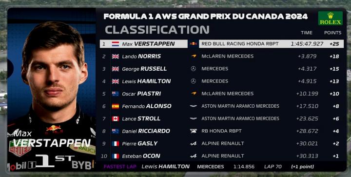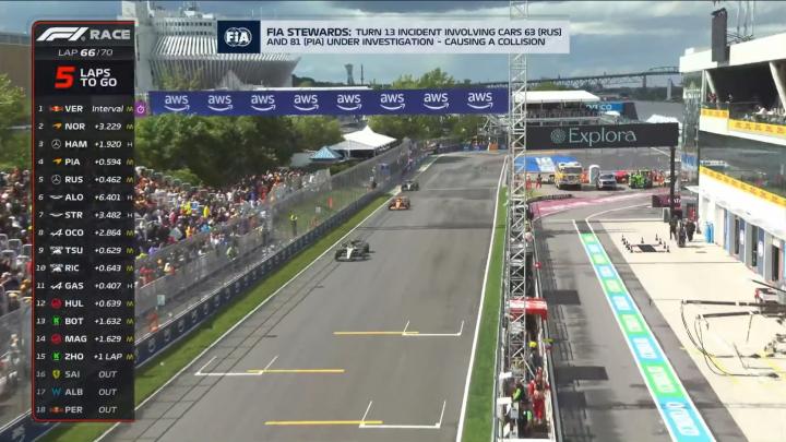 北京时间6月10日,F1加拿大站正赛结束。维斯塔潘夺冠,诺里斯、拉塞尔位居二三,汉密尔顿最快圈,周冠宇第15。另外,有5名车手因事故退赛,法拉利与威廉姆斯双车退赛。