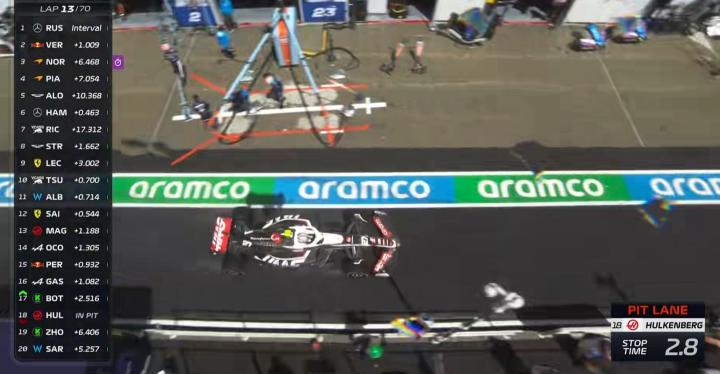 第46圈!索伯的换胎出现严重问题!周冠宇从维修区出来后落后霍肯博格51秒!