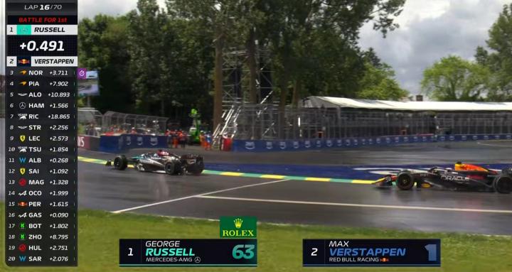 第16圈,维斯塔潘不断给拉塞尔施压!双方的差距被缩至0.5秒以内!