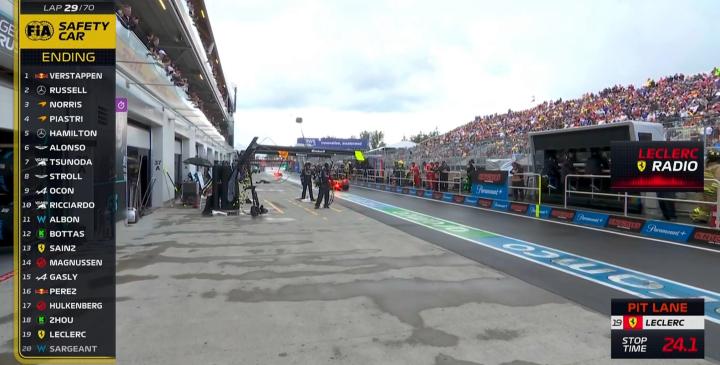 第29圈!勒克莱尔选择进站重启车辆!!!同时换上硬胎!准备全力拼一把!