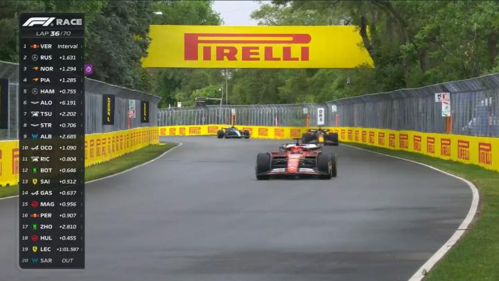 第36圈!勒克莱尔被出示蓝旗!维斯塔潘、拉塞尔相继套圈勒克莱尔!
