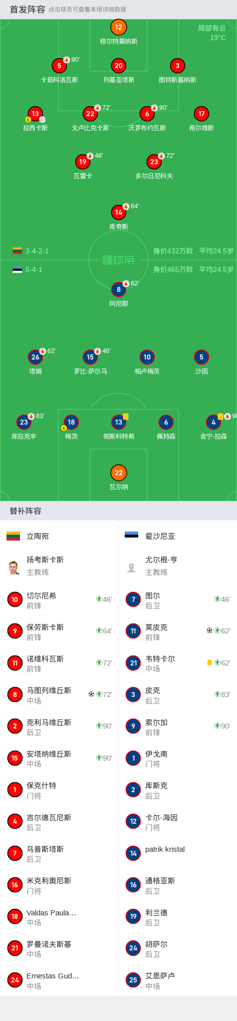 第84分钟,立陶宛球员拉西卡斯助攻马图列维丘斯打入一球。
