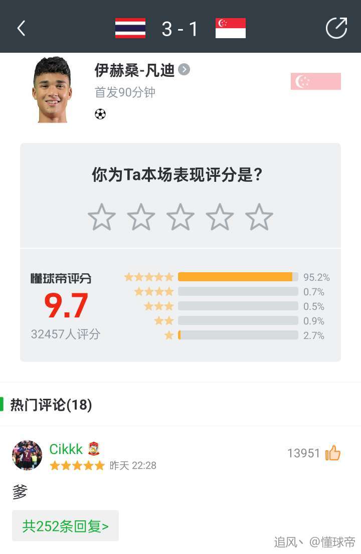 扫描下载懂球帝首页>动态> 新加坡进球队员凡迪:我们有很多机会,应该至少战平泰国