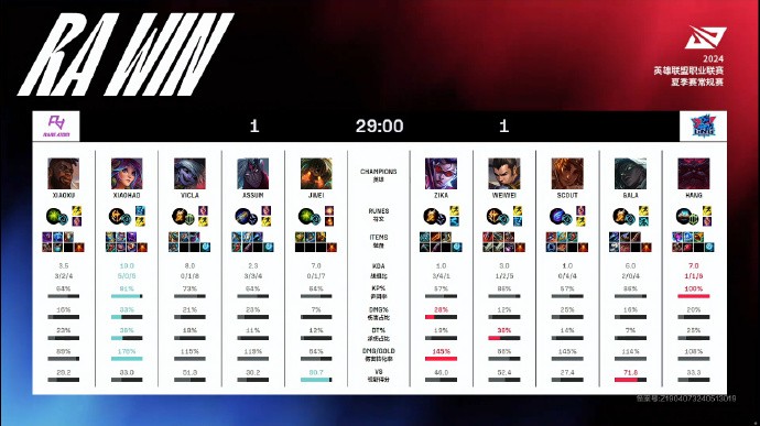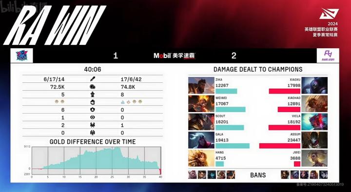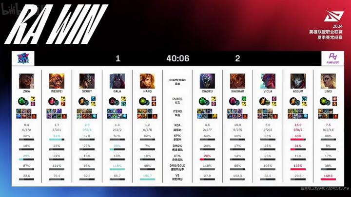 扫描下载懂球帝首页>动态> 懂球号> 2024LPL夏季赛:LNG 1-2 RA,RA落后接近九千经济完美翻盘