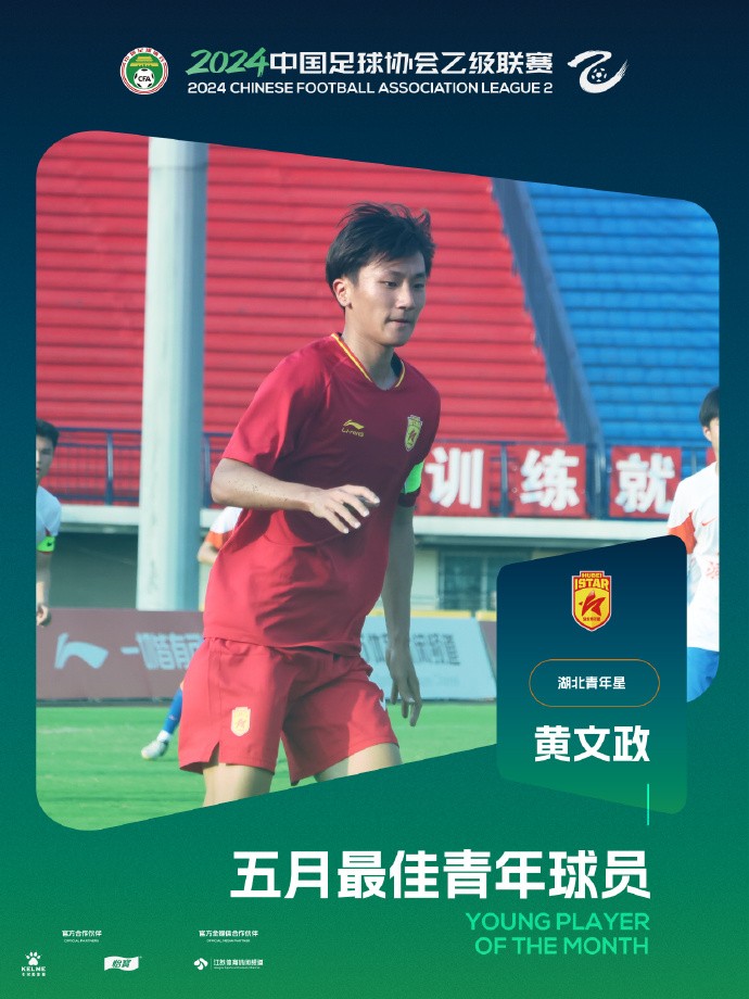 北京时间6月22日,中乙联赛官方宣布,湖北青年星前锋黄文政当选五月最佳青年球员。