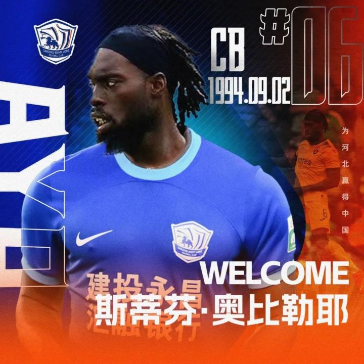 经友好协商,英格兰球员斯蒂芬-奥比勒耶正式加盟沧州雄狮足球俱乐部。
