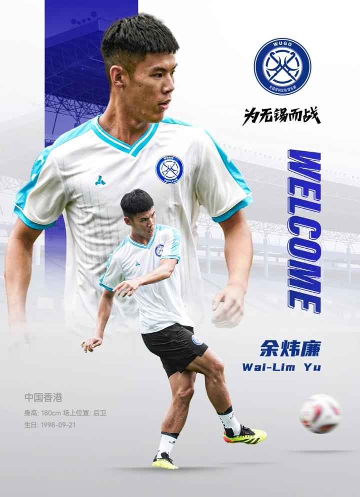 我们在此郑重宣布,经双方友好协商达成一致,即日起,中国香港球员余炜廉加盟无锡吴钩足球俱乐部,征战中甲联赛及俱乐部相关赛事。