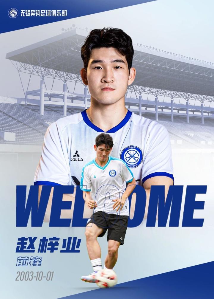 我们在此郑重宣布,经双方友好协商与达成一致,即日起,球员赵梓业正式加盟无锡吴钩足球俱乐部,征战中甲联赛及俱乐部相关赛事。