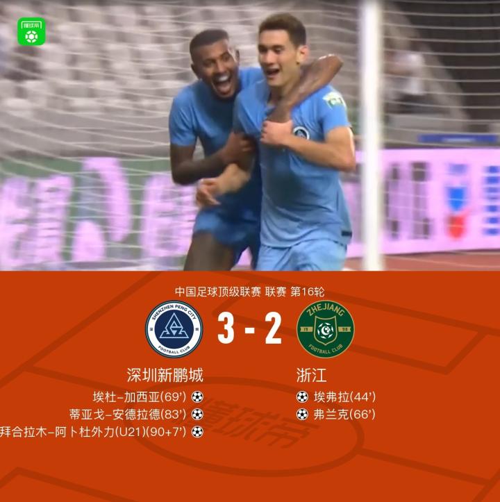 扫描下载懂球帝首页>动态> 让二追三!深圳新鹏城3-2浙江,弗兰克破门,拜合拉木绝杀