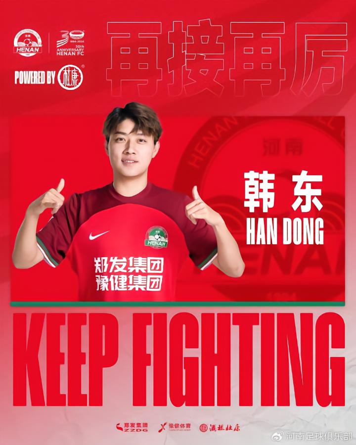 北京时间7月12日,河南足球俱乐部官方宣布,球队前锋韩东租借加盟湖南湘涛,租借期至2024年12月31日。