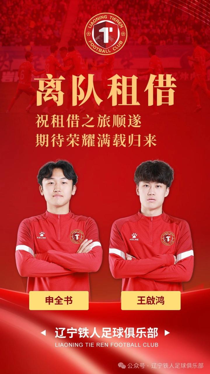 辽宁铁人俱乐部官方宣布,申全书租借加盟西安崇德荣海,王啟鸿租借至江西黑马青年,商隐离队(已加盟广东广州豹)。