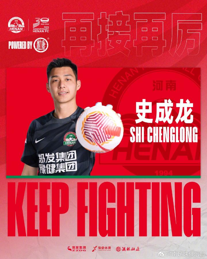 官方消息,河南队门将史成龙租借加盟中甲球队南京城市。