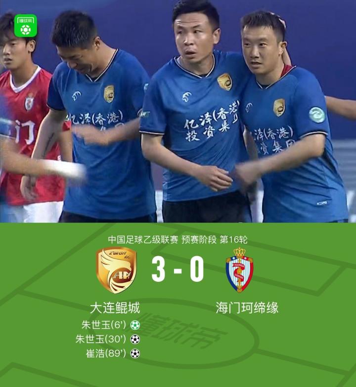 扫描下载懂球帝首页>动态> 大连鲲城3-0完胜海门珂缔缘,朱世玉梅开二度,崔浩破门