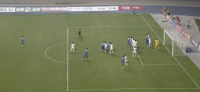 第40分钟,定位球机会,广州队球员争到落点头球偏出立柱