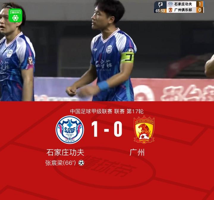 北京时间7月14日19:30,中甲第17轮,石家庄功夫坐镇主场迎战广州队,本场比赛广州队排除全华班应战。上半场,双方均无建树;下半场,张宸梁利用角球机会破门,梅西-保利击中横梁。最终,石家庄功夫以1-0战胜广州队,终结5轮不胜。