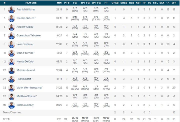 扫描下载懂球帝首页>动态> 东道主法国男篮78-66逆转巴西取开门红,文班19分9板4断3帽