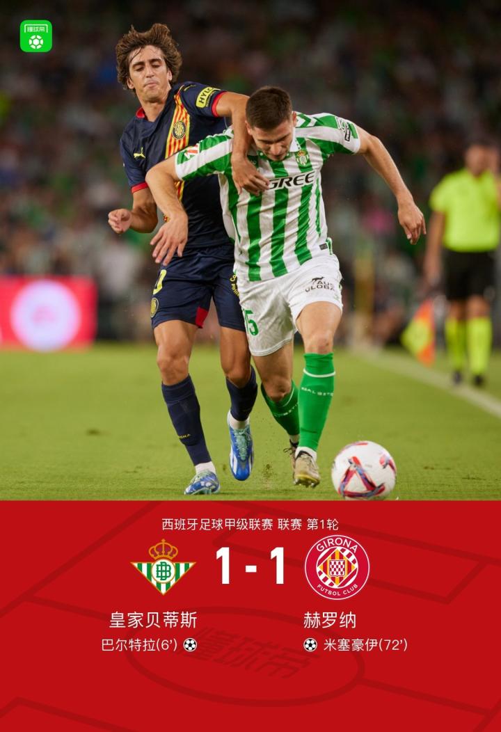 扫描下载懂球帝首页>动态> 皇家贝蒂斯1-1赫罗纳,巴尔特拉破门,米塞豪伊扳平